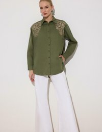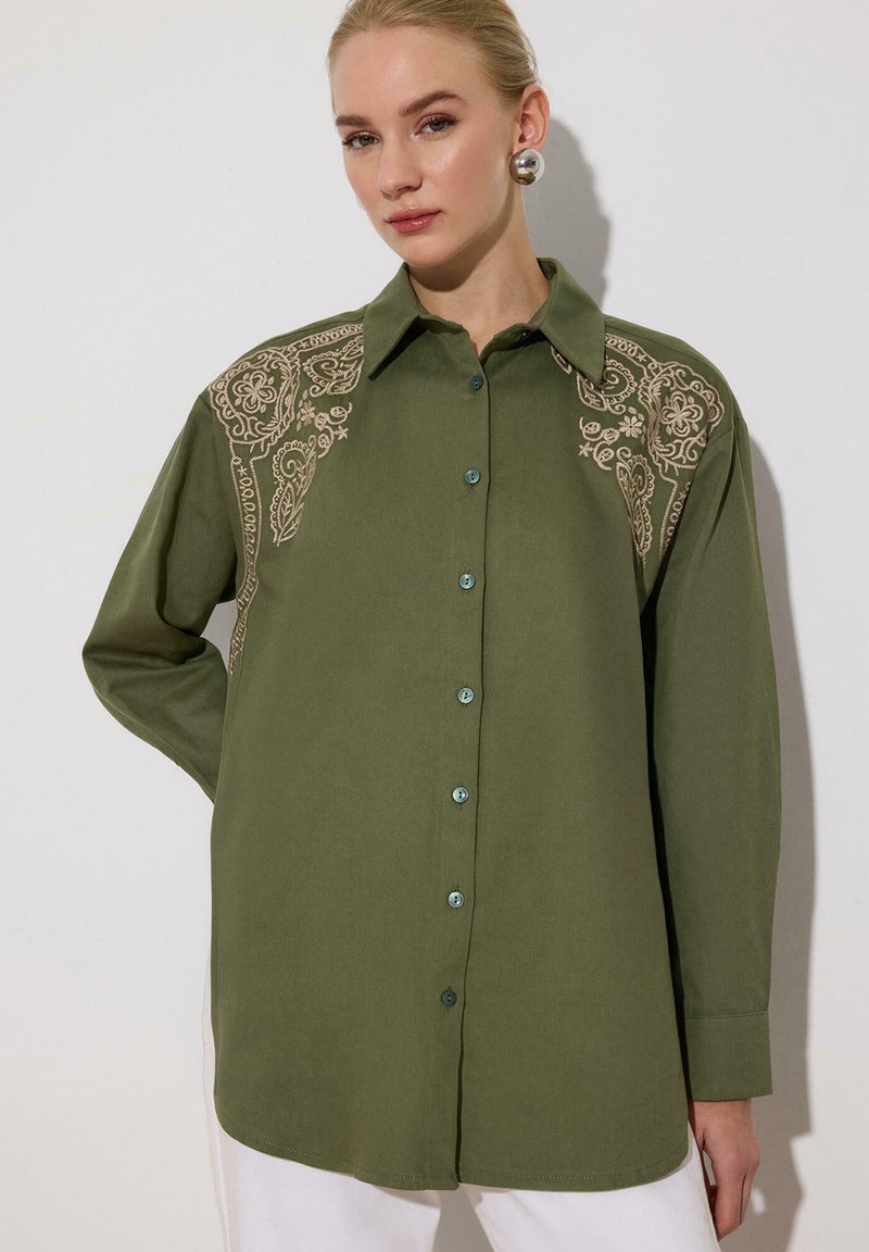 EMBROIDERED FRONT - Užsagstoma palaidinė - khaki