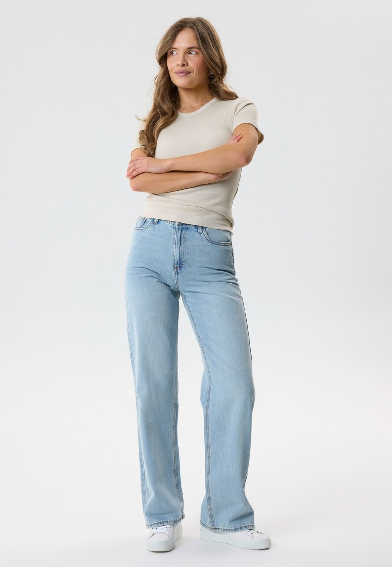 HIGH WAIST WIDE LEG - Laisvo kirpimo džinsai - light blue bleached denim