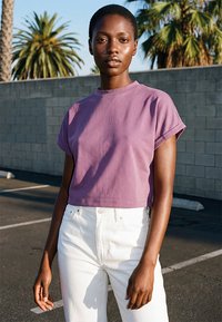LADIES SHORT PIGMENT DYE CUT ON SLEEVE TEE - Paprasti marškinėliai - duskviolet