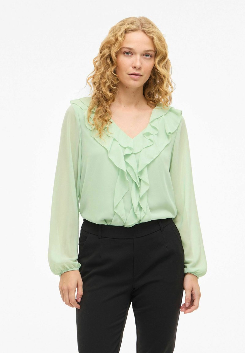 VIANE V-NECK FRILL - NOOS - Palaidinė - smoke green